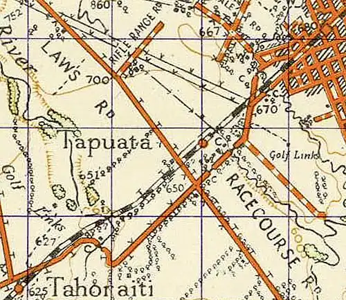In February 1889 a petition asked for exchange of the names of Tamaki and Tahoraiti stations.[9] From Friday 5 April 1889 Tahoraiti siding became Tamaki Sawmill Company's siding and from 8 April Tamaki station became Tahoraiti.[22] Tahoraiti has been an official name since 1939.[23]