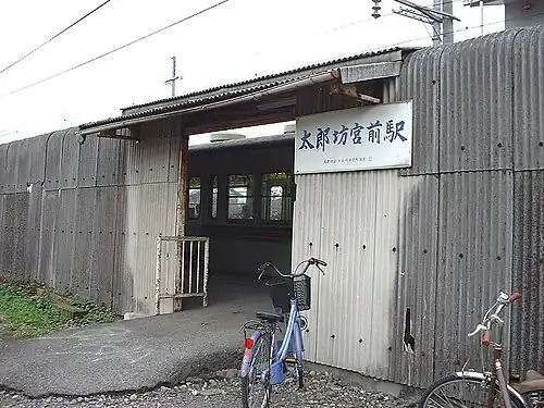Tarōbōgūmae Station (太郎坊宮前駅, Tarōbōgūmae-eki) is a passenger railway station in located in the city of Higashiōmi, Shiga Prefecture, Japan, operated by the private railway operator Ohmi Railway. Although Ohmi Railway did use the name Tarōbōgū-mae with long sound for the first "o" on its web page,[1] as of 2024 it does use the name Tarobōgū-mae with a short sound for the first "o".