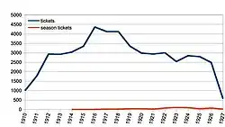 Passenger numbers rose rapidly until 1916, as shown in the table and graph below –