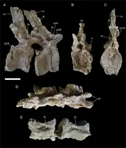 - ^ a b c d e Federico Fanti; Andrea Cau; Mohsen Hassine & Michela Contessi (2013). "A new sauropod dinosaur from the Early Cretaceous of Tunisia with extreme avian-like pneumatization". Nature Communications. 4 (2080): 1–7. Bibcode:2013NatCo...4.2080F. doi:10.1038/ncomms3080. PMID 23836048.