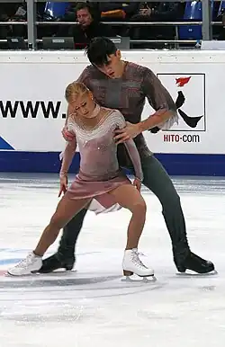 The head of the Ukrainian trainers' council admitted there were no partners for her in the country who could compete at a high level,[15] and on 14 May 2010, it was reported that Ukraine would not interfere with her decision to compete for Russia.[16] Russian coach Ludmila Velikova confirmed that Russia had attempted years earlier to persuade Volosozhar to skate under its colors, however, the Ukrainian skating federation believed she would be successful with Stanislav Morozov.[16]