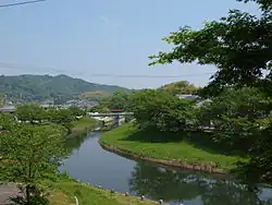 The Tatsuta River has long been known as the 'Heiguri River'.[2] In the Edo period, the area near Tatsuta was called 'Tatsuta River' or 'Nishino Okawa', and the area near Mt. Mimuro was called 'Shiota River'.[2] The river was mentioned in Japanese poems of the Heian period, but this 'Tatsuta River' refers to the vicinity of Kamenose, the main stream of the Yamato River.[2]