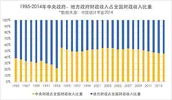 In 1994, the tax-sharing reform was officially implemented, when the central government's fiscal revenue reached an unprecedented growth of 203.5%.[5] However, in 2000, the Ministry of Finance and the State Administration of Taxation disagreed on whether they should keep raising the percentage of government revenue to GDP. While the Minister of Finance Xiang Huaicheng still advocated doing so, Jin Renqing, the director of the State Administration of Taxation, advocated flexible adjustment to the tax system. In 2010, with the steady growth of the central government's fiscal revenue, local governments started to manifest disagreements. By 2015, when the central government's fiscal revenue reached 50% of the total amount, the central government's fiscal expenditure accounted for only 15%, which aggravated the disequilibrium between the central and local governments' financial powers, making it hard for local governments to go through budgeting and implementation process.[6]