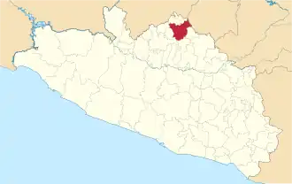 Taxco de Alarcón is a municipality in the Mexican state of Guerrero. It covers an area of 650.7 km2 and includes 121 communities. The municipal seat lies at Taxco de Alarcón. The population was 105,586 at the time of the 2020 census.[1]