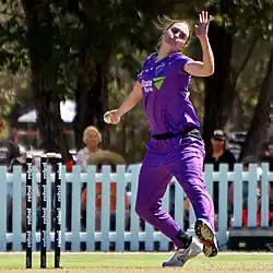In November 2018, she was named in the Melbourne Renegades' squad for the 2018–19 Women's Big Bash League season.[12][13] In April 2019, Cricket Australia awarded her with a contract with the National Performance Squad ahead of the 2019–20 season.[14][15] In June 2019, Cricket Australia named her in Australia's team for their tour to England to contest the Women's Ashes.[16][17] She made her Test debut for Australia against England women on 18 July 2019.[18] In January 2020, she was named in Australia's squad for the 2020 ICC Women's T20 World Cup in Australia.[19] However, the following month, she was ruled out of the tournament, after suffering a stress injury of her right foot.[20]