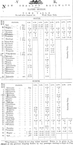- ^ "RAILWAY TIME-TABLE. HASTINGS STANDARD". paperspast.natlib.govt.nz. 28 April 1896. Retrieved 16 July 2021.