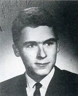 After graduating from high school in 1965, Bundy attended the University of Puget Sound (UPS) for one year before transferring to the University of Washington (UW) to study Chinese.[45] In 1967, he became romantically involved with a UW classmate, Diane Edwards (identified in Bundy biographies by several pseudonyms, most commonly "Stephanie Brooks").[46] Bundy later described Edwards as "the only woman I ever really loved."[47]