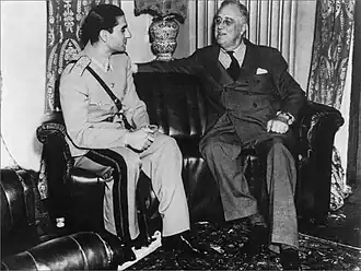Roosevelt was physically disabled and found travel difficult. Churchill was an avid traveller and, as part of an ongoing series of wartime conferences, had already met with Roosevelt five times in North America and twice in Africa and had also held two prior meetings with Stalin in Moscow.[2] To arrange the urgently needed meeting, Roosevelt tried to persuade Stalin to travel to Cairo. Stalin turned down the offer and also offers to meet in Baghdad or Basra. He finally agreed to meet in Tehran in November 1943.[2] Iran was a neutral country but was nevertheless invaded jointly by the United Kingdom and the Soviet Union in August 1941.