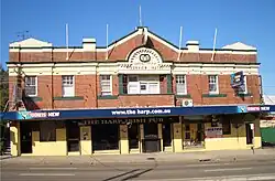Tempe's commercial area is located along the Princes Highway. The main shopping strip includes the Tempe Hotel, a newsagency, a light and sound store, a doctor's surgery, a dentist's surgery, a Thai Restaurant, a picture framing business "Frame Up", and Camera Warehouse. The Riverview Hotel, formerly Valve Bar and Venue,[17] formerly the Harp Irish Pub, and originally the Riverview Hotel (built in 1922), is located on the Princes Highway close to Harry's Cafe de Wheels, formerly known as Deno's Diner, formerly known as Cobb & Co., a fast food outlet designed on the 1950s drive-in model.