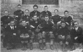 Late in the season, a varsity football team was formed and staged a single match against the freshmen. The game was conducted to raise funds for the war effort and ended in a 6–6 tie.[14]