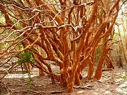 The word Temuco comes from the Mapudungun language, meaning "temu water"; "temu" is the common name of two native trees of the family Myrtaceae, Luma apiculata (also known as arrayán in Spanish) and Blepharocalyx cruckshanksii. Both species are characterized by their orange-reddish bark and by having aromatic fruits and leaves which are commonly used by the Mapuche for medicinal purposes. While Blepharocalyx cruckschankii is endangered, Luma apiculata is relatively common and in Temuco it is possible to see it in the Cerro Ñielol Natural Monument (in its natural state) as well as in city gardens and sidewalks. The blend between the words "temu" and "co" (water), probably reflects the fact that these trees frequently grow beside water bodies.