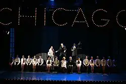 Partial repertoire of the theatre with former and active musicals and plays (the flags on the side indicate from which countries the musicals were originally created):[3]