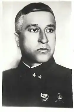 Terentiy Mikhaylovich Parafilo (Russian: Тере́нтий Михай́лович Парафи́ло; 28 October 1901 – 24 June 1943) was a Soviet military commander. Parafilo is primarily remembered for his service during World War II, in which he first participated as commander of a Naval Infantry brigade attached to the Baltic Sea Fleet during Nazi Germany's incursion into the Baltics, then as a major general commanding the shore-based 7th Airborne Guards Division of the Soviet Army.
