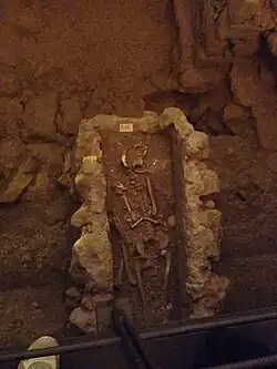 Between 2004 and 2008, excavations were performed in the church and in the nearby area. This led to the discovery of nine rooms and several tombs. In 2015, the entire block to the North of the church was expropriated, and excavations were carried out in the area. As part of these excavations, archaeologists brought to light an imposing Castellum aquae connected to a branch of the Roman aqueduct of Catania as well as a quadrangular courtyard surrounded by exedras, which is best interpreted as the original entrance to the thermae.[6]