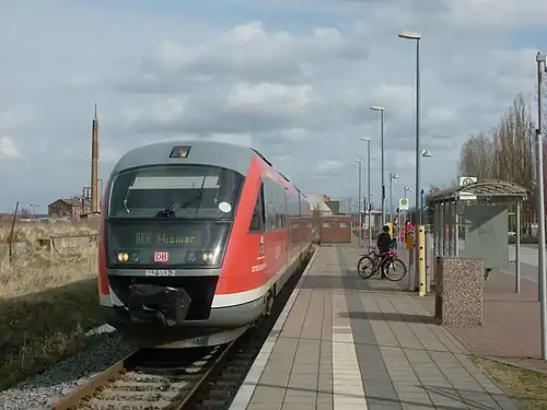 Tessin station is a railway station in the town of Tessin, located in the district of Rostock, Mecklenburg-Vorpommern, Germany.
