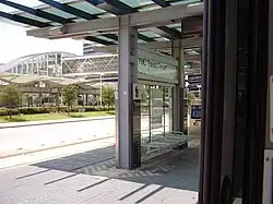 A groundbreaking was held for the transit center in late 2002. It was built at a cost of $9.2 million and was the largest METRO transit center at the time.[4] The transit center's rail platforms opened with the Red Line on January 1, 2004,[1] while the bus platforms opened a month later on February 15.[5]