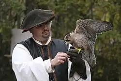 On the larger stages, other, grander events take place, the largest of which is the Joust. The Joust is performed by the Hanlon-Lees Action Theatre, and is an accurate reenactment of a medieval joust, featuring authentic weapons, costumed horses, and armored knights.[11] Other performances at the festival include acts designed for mature audiences only; as well as for youngsters. Staple performances include The Birds of Prey show, a highly praised free-flying bird show including hawks, owls, vultures, and eagles,[12] the Fire Whip Show, the Clan Tynker Family Circus, the Pride of Bedlam, and the School of Sword.[13]