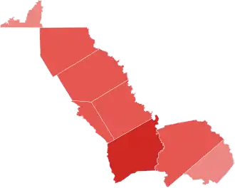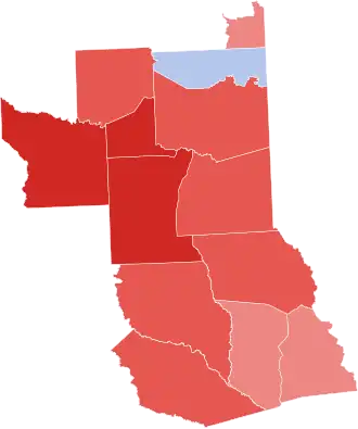 County results Brady: 50–60% 60–70% 70–80% Wright: 50–60% |