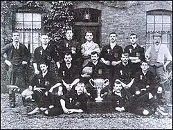 The Ironworks played their first fixture against Royal Ordnance reserves on 7 September 1895, the game ending 1–1.[8] One of the players likely to have been involved in this first game was Iron Works employee Charlie Dove,[9] who had played at full-back and centre forward during his time as a junior player.[5] Dove would be mainly used as a right-half, but would play every position for The Irons during his time with them.[10] Looking to bolster their attacking strength, the Irons had also recruited Ironworks employee George Gresham, an inside-forward who had played for Gainsborough Trinity, who would go on to score many goals for the club in the following four seasons.[11]