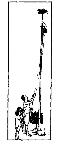 ![]() Mera Thaomei, a lamp tied to a tall bamboo pole being lighted during Mera Hou Chongba festival | |
