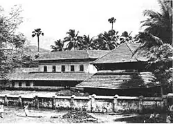 Tharavad, also spelled as Tharavadu (pronunciation) (തറവാട്), is the Malayalam word for the ancestral home of aristocratic Nair families[1][2] in Kerala, which usually served as the common residence for the matrilineal joint family under the Marumakkathayam system practiced in the state.[3][4] German linguist Hermann Gundert, in his Malayalam—English dictionary published in 1872, defines a Tharavadu as, "An ancestral residence of land-owners and kings", and also as, "A house, chiefly of noblemen".[5] It was classically the residence of Jenmimar, but contemporary usage of the word is now more generic to all social classes and religions in Kerala.[6] By extension, the word refers not just to the family's house but also to the extended family that shares that house. Heads of tharavadus - usually the eldest living male - were known as Karnavars, and junior members as Anandravans.