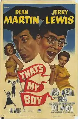 That's My Boy is a 1951 American semi-musical comedy film directed by Hal Walker and starring the comedy team of Martin and Lewis and marked the first time that Dean Martin and Jerry Lewis had "roles" as opposed to previous efforts in which they played an extension of their nightclub act. It was released on May 31, 1951 by Paramount Pictures.