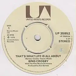 "That's What Life Is All About" is a 1975 song recorded by Bing Crosby. It was originally written by Peter Dacre (lyrics) and Les Reed (music). Later, Crosby re-wrote the lyrics with Ken Barnes.[1]
