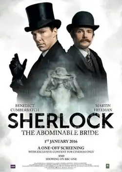 "The Abominable Bride" is a special episode of the British television programme Sherlock. The episode was broadcast on BBC One, PBS and Channel One on 1 January 2016. It depicts the characters of the show in an alternative timeline: the Victorian London setting of the original stories by Arthur Conan Doyle. The title is based on the quote "Ricoletti of the club foot and his abominable wife" from "The Adventure of the Musgrave Ritual" (1893), which refers to a case mentioned by Holmes.[1] The story also draws on elements of original Conan Doyle stories of Holmes such as "The Five Orange Pips" (1891) and "The Final Problem" (1893).