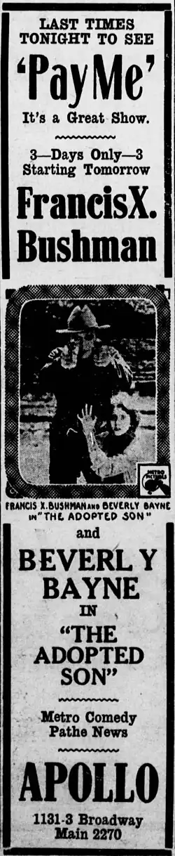 - ^ "The Shadow Stage: The Adopted Son". Photoplay. December 1917. p. 124. Retrieved November 30, 2019.
