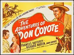 The Adventures of Don Coyote is a 1947 American Western comedy film in Cinecolor. It is directed by Reginald Le Borg and written by Robert Creighton Williams and Harold Tarshis. The film stars Richard Martin, Frances Rafferty, Val Carlo, Benny Bartlett, Marc Cramer and Frank Fenton. The film was released on May 9, 1947, by United Artists.[1][2]