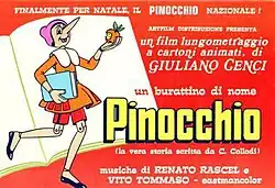 The Adventures of Pinocchio (Italian: Un burattino di nome Pinocchio, literally A puppet named Pinocchio) is a 1972 Italian animated fantasy film produced by Cartoons Cinematografica Italiana. An adaptation of Carlo Collodi's 1883 book The Adventures of Pinocchio, it is written, produced, directed and edited by Giuliano Cenci. The English dub was released in the United States by G.G. Communications in October of 1978.