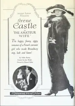 The Amateur Wife is a 1920 American silent comedy-drama romance[1] directed by Edward Dillon and written by Nalbro Bartley and Jane Murfin. The film stars Irene Castle, William P. Carleton, Arthur Rankin, S.J. Warrington, Alex Saskins and Augusta Anderson. The film was released on February 22, 1920, by Paramount Pictures.[2][3][4]