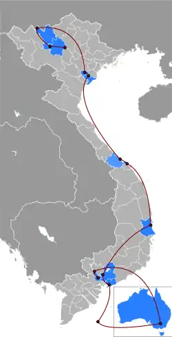 Melbourne (Melbourne Airport) to Ho Chi Minh City, Vietnam (Tan Son Nhat International Airport)