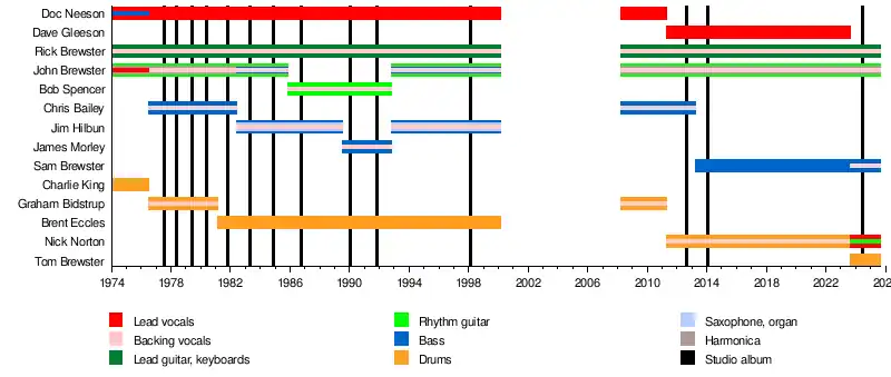 In May 2023, Gleeson announced that he would be stepping down as the band's lead vocalist, with drummer Nick Norton taking his place. The line-up change also introduced new member Tom Brewster on drums, who is John Brewster's son and Sam Brewster's brother.[72]