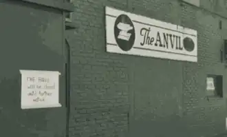 In the fall of 1974, The Anvil opened, with the main floor featuring a dance floor and a rectangular bar along with a performance area, all painted black. There was another small bar downstairs with a large screen on which gay male porn of the period was shown. Behind the screen, there was a "cavernous" and "dark" backroom that was used as a sex area.[2] There were reportedly mock crucifixions, golden showers, and "plenty of anonymous sex."[3] The club would accept "some drag queens" but not women.[2]