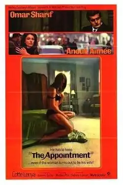 The Appointment is a 1969 psychological drama film directed by Sidney Lumet and starring Omar Sharif and Anouk Aimée. Written by James Salter, it is based on the story by Antonio Leonviola.