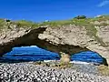 The park is north of Gros Morne National Park near Parson's Pond along the Viking Trail, and includes a parking lot, boardwalk, and picnic area. The rock formation is composed of Ordovician aged dolomitic conglomerates of the Daniels Harbour Member of the Cow Head Group which has been eroded by sea wave action. These porous conglomerates can be oil-bearing, and areas near The Arches Provincial Park have seen some oil exploration activity.