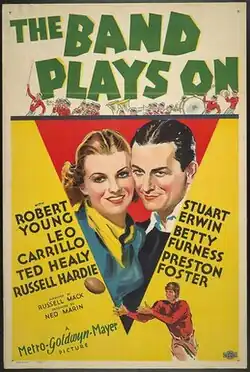The Band Plays On is a 1934 American drama film directed by Russell Mack and written by Bernard Schubert, Ralph Spence and Harvey Gates. The film stars Robert Young, Stuart Erwin, Leo Carrillo, Betty Furness, Ted Healy and Preston Foster. The film was released on December 21, 1934, by Metro-Goldwyn-Mayer.[1][2]