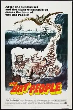The Bat People is a 1974 American horror film directed by Jerry Jameson, produced by Lou Shaw, and distributed by American International Pictures. Starring Stewart Moss and Marianne McAndrew, the film tells the story of Dr. John Beck, who after being bitten by a bat in a cave, undergoes an accelerated transformation into a man-bat creature.