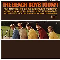 The Beach Boys Today! is the eighth studio album by the American rock band the Beach Boys, released March 8, 1965, by Capitol Records. It signaled a departure from their previous work with its orchestral sound, intimate subject matter, and abandonment of car or surf songs. Side one features an uptempo sound, while side two consists mostly of introspective ballads. Supported by this thematic approach, the record contributed to the group's recognition as album artists rather than a singles act. It has since become regarded as one of the greatest albums of all time.[3]