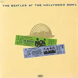 The Beatles at the Hollywood Bowl is a live album by the Beatles, released in May 1977, featuring songs compiled from three performances recorded at the Hollywood Bowl in August 1964 and August 1965.[1] The album was released by Capitol Records in the United States and Canada and on the Parlophone label in the United Kingdom. It was the band's first official live recording. A remixed, remastered, and expanded version of the album, retitled Live at the Hollywood Bowl, was released on 9 September 2016, on CD for the first time, to coincide with the release of the documentary film The Beatles: Eight Days a Week, directed by Ron Howard.[2][3]