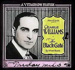The Black Gate is a 1919 American silent mystery film directed by Theodore Marston and starring Earle Williams, Ruth Clifford, Harry Spingler, J. Parks Jones, and Clarissa Selwynne. The film was released by Vitagraph Company of America in November 1919.[1][2][3]