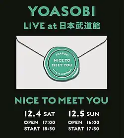 - ^ "「はじめまして、YOASOBIです!」YOASOBI、有観客ライブ『NICE TO MEET YOU』を日本武道館にて開催". The First Time (in Japanese). December 5, 2021. Archived from the original on January 28, 2022. Retrieved May 4, 2022.