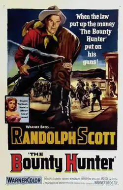 The Bounty Hunter is a 1954 American western film directed by Andre DeToth and starring Randolph Scott, Marie Windsor and Dolores Dorn. It was the last of six Randolph Scott westerns with DeToth and the first film to feature a bounty hunter as its hero. It was released by Warner Bros. It was filmed in 3-D but released in standard format, though a 3-D print exists in the Warner archives. Stock footage from the 1952 film Carson City is used at the beginning of the film.[1] Portions of the film were shot on location in California at Red Rock Canyon and the Mojave Desert.[2]