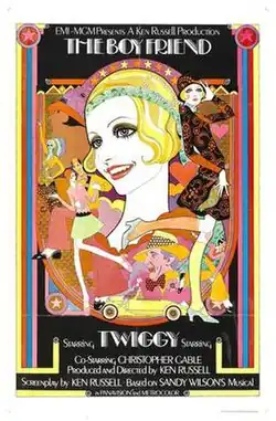 The Boy Friend is a 1971 British musical comedy film written and directed by Ken Russell, based on the 1953 musical of the same name by Sandy Wilson. The film stars Twiggy, Christopher Gable, Tommy Tune, and Max Adrian, with an uncredited appearance by Glenda Jackson.[3][4]