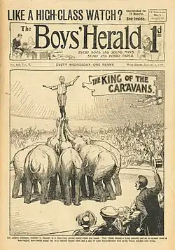 The Boys' Herald was a British boys' story paper published by the Amalgamated Press in the early 20th century.[1] Launched in August 1903, it was the third in a trio of successful boys’ publications under the direction of Hamilton Edwards, following The Boys' Friend (1895) and The Boys' Realm (1902). The Boys' Herald was marketed as “A Healthy Paper for Manly Boys” and was notable for its white paper print, distinguishing it from its predecessors. It ran for 511 issues from August 8, 1903, until May 18, 1912.[2]