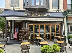 The Brass Rail is a two-story restaurant located in historic downtown Hoboken,[1] at 135 Washington Street. Originally built and opened around the turn of the 20th century, it has for many years been known for its raspberry beer,[2] as well as its French cuisine.[3] Residents of Hoboken recommend the Brass Rail to visitors,[3] although the restaurant does retain a local crowd.[4] In the late 1970s and early 1980s, the Brass Rail was frequented by many poets, during an emerging literary revival period in Hoboken. They met there, drank and discussed their art.[5] The restaurant in the 1980s was owned by Michael Peters,[6] and the building suffered a devastating fire.[7] It was reportedly caused by a careless smoker; the damage forced the building to close down, and Michael Peters sold the restaurant and opened up another restaurant in Kinsale, Ireland.[6]