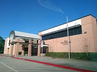 Briarwood is located on Whittington Drive in west Houston, Texas, next to Ashford Elementary School. The campus building, built in 1973,[8] is two stories tall and contains two gymnasiums, three lunch rooms, and three academic wings. An athletic field is also used for flag football, soccer, and physical education classes. Attached to the athletic field is a small tennis/pickleball complex.