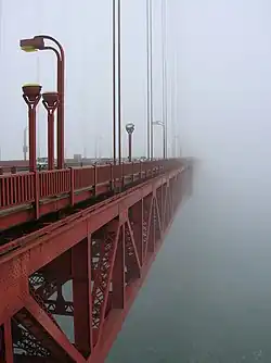 The Bridge is a 2006 documentary film by Eric Steel spanning one year of filming at the Golden Gate Bridge which crosses the Golden Gate entrance to San Francisco Bay, connecting the city of San Francisco, California to the Marin Headlands of Marin County, in 2004. The film shows a number of suicides, and features interviews with family and friends of some of the identified people who had thrown themselves from the bridge that year and one person who had jumped previously and survived.[4]