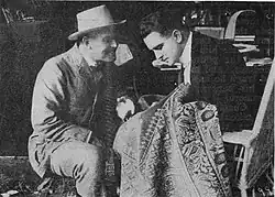William Selig aggressively promoted his studio and its films. One such promotion, a March 1915 media tour of the unfinished Selig Zoo, allowed reporters a visit to The Carpet from Bagdad's bazaar set.[13] This was the first film distributed by V-L-S-E,[14] a conglomerate created by Vitagraph Studios, Lubin Manufacturing Company, Selig Polyscope Company, and Essanay Studios.[15] The film was also screened in a special invitation-only showing at the art gallery of the Bobbs-Merrill Company, publisher of MacGrath's novel, an early example of a sponsored exhibition of a feature film in a location other than a theater.[16]